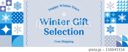広告テンプレート/雪の結晶のタイル模様のフレーム(横向き16:9)