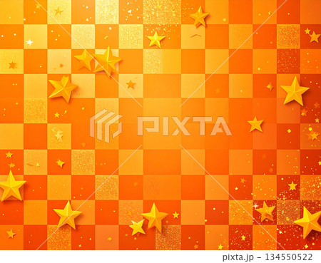 爽やかなオレンジ色と星々が織りなす手描き風タイルのチェック模様背景
