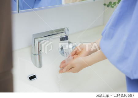 手洗いする女性