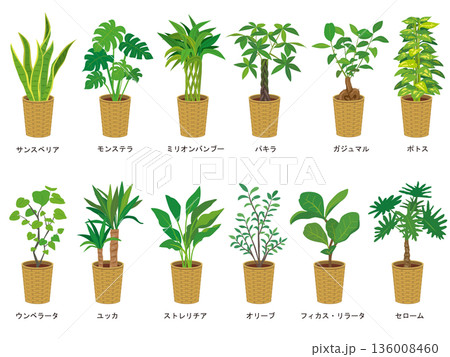 イラスト素材: 観葉植物のベクターアイコンセット