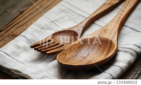 水彩イラスト 手描きイラスト 木製のスプーンとフォーク