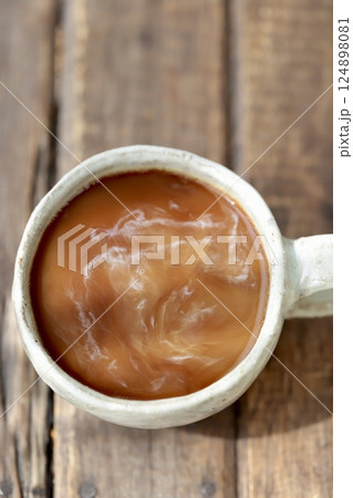 ミルクを入れたばかりの混ざり切っていないカフェオレ