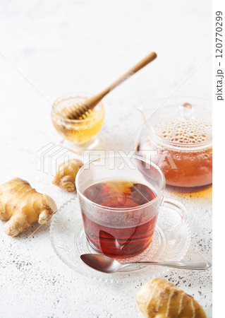 グラスのカップに注いだはちみつ生姜紅茶