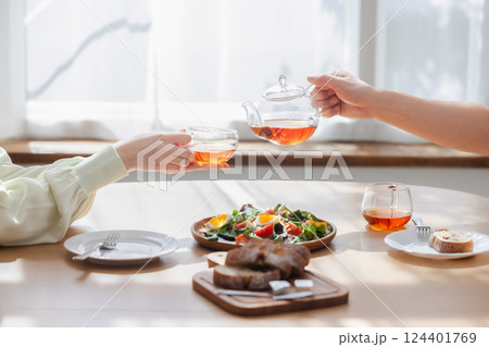 紅茶を注ぐ手元 カップル