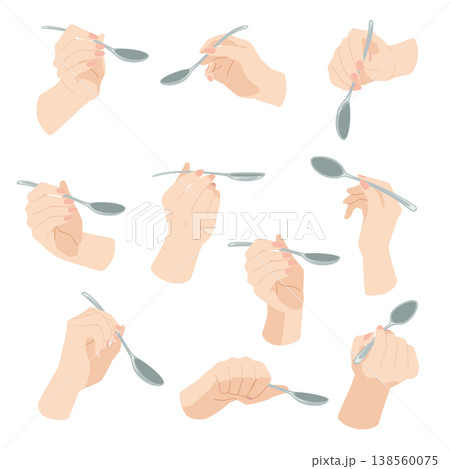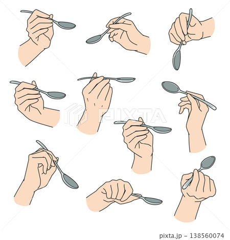 スプーンを持つ手のイラスト 10パターン