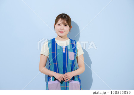 エプロンを着た女性 白背景 ポートレート カメラ目線