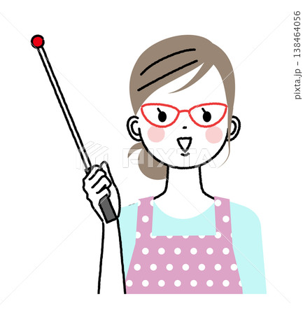 真剣な顔で指をさすエプロンを付けた女性イラスト