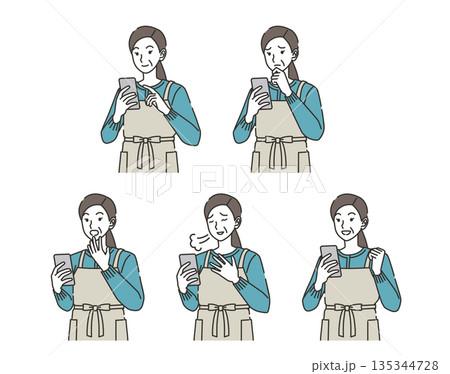 家事や接客シーン向けのエプロン姿の女性 ジェスチャーポーズベクターイラストセット