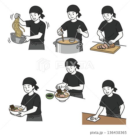 鯵(アジ)を下ろす 魚をさばく手順 手描き和風イラストセット