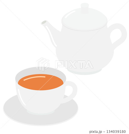 ティーポットと紅茶の入ったティーカップのシンプルなイラスト