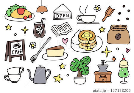 手書きのティータイムとリラックスアイコンセット 線画 ベクターイラスト