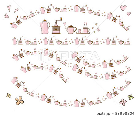 コーヒーカップと砂糖とポットのイラスト