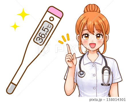 看護師 体温計を持つ説明用イラスト(上半身・正面・背景透過)