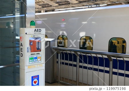 新幹線のホームに設置されたAED 自動体外式除細動器