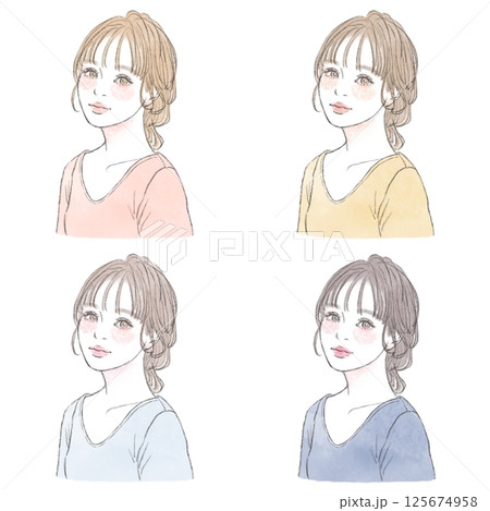 パーソナルカラー4シーズンイメージ女性の水彩画風イラストセット