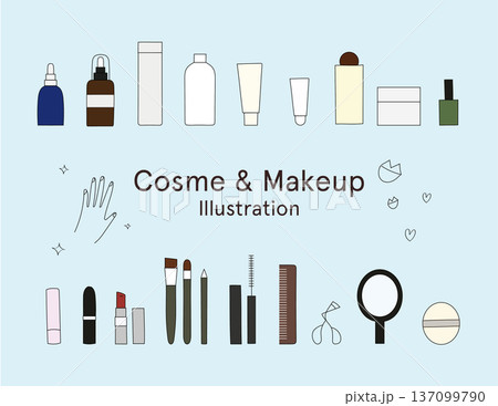 コスメ 化粧品の組み合わせ 手描き風イラストセット