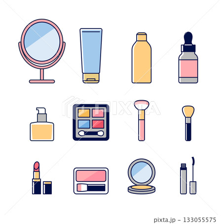 化粧品 メイク道具 美容に関するアイコンセット カラー