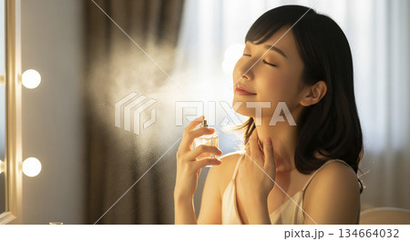 香水を使う若い女性