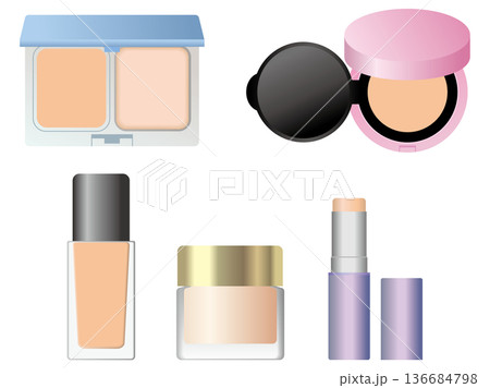 ファンデーションの種類セット(パウダー・クッション・リキッド・クリーム・スティック)カラフルタイプ