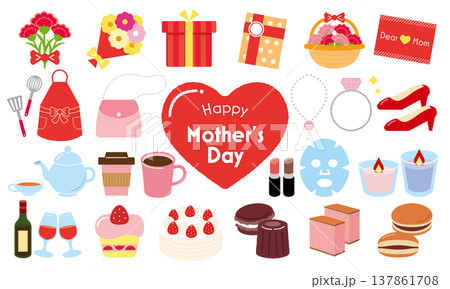 母の日に関連する人やプレゼントのイラストのセット_主線あり