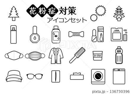 花粉症対策アイコンセット|マスク・薬・メガネ・スプレーなど春のアレルギー予防素材