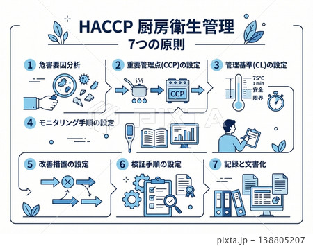HACCPハサップ7つの原則 厨房衛生管理ポスター 背景素材 テンプレート 食品安全 啓発イラスト