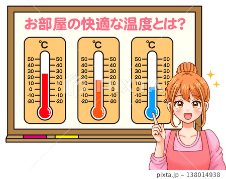 温度計で室温を測る主婦のイラスト素材3