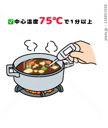 中心温度75℃で1分以上加熱(食中毒予防・HACCP)調理加熱の基準イラスト