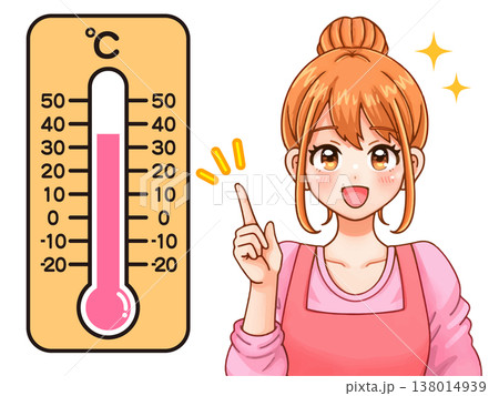 温度計で室温を測る主婦のイラスト素材