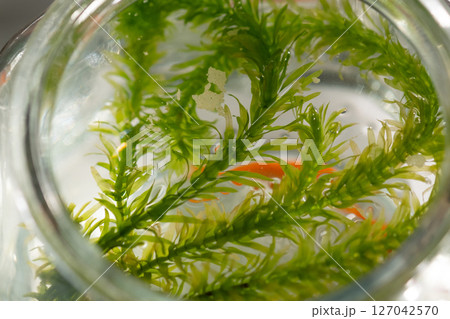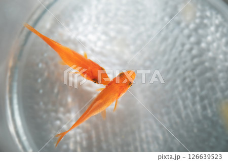 金魚鉢で泳ぐ金魚のイメージ (写真素材)