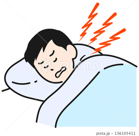 睡眠中にうなされている男性のイラスト