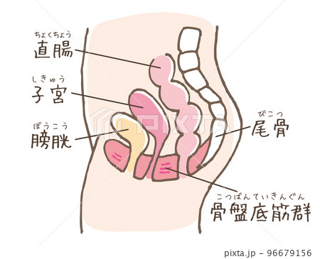 骨盤底筋群のイラスト 名称無し(線画別カラー)