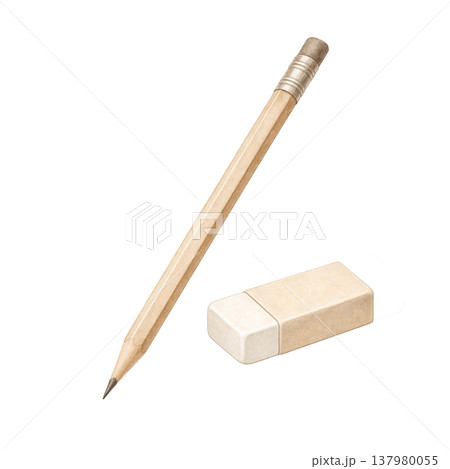 鉛筆と消しゴムのイラスト 手描き 水彩風