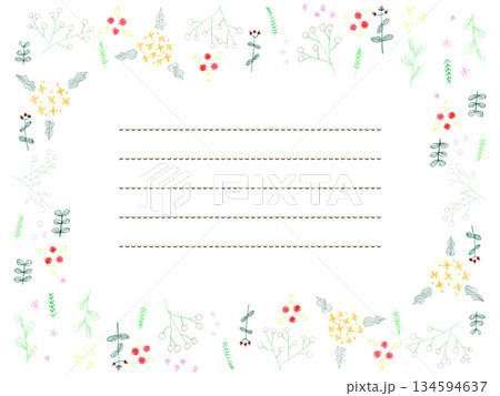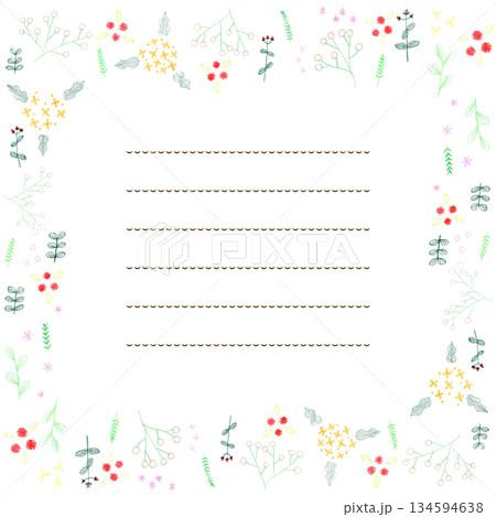 かわいいお花の手描き色鉛筆フレーム