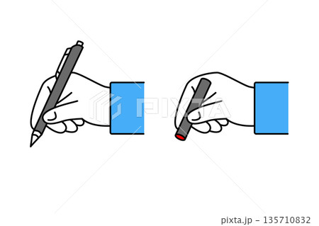 ペンや印鑑を使って契約や申請をする人物の手のアイコンセット