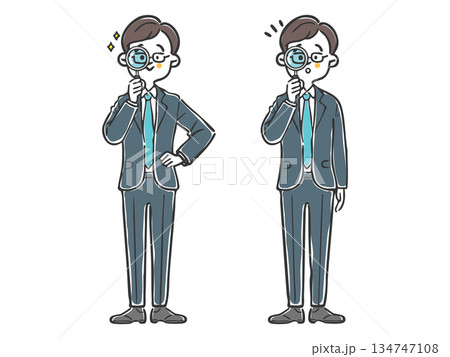 虫眼鏡でチェックをしている男性のイラスト