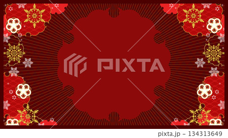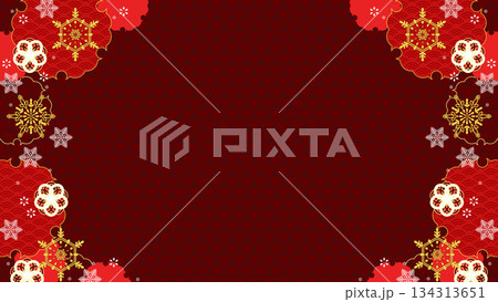 華やかな雪と和の横型背景、16:9サイズ
