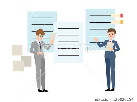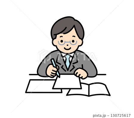 書類を記入する男性のビジネスパーソンのイラスト素材