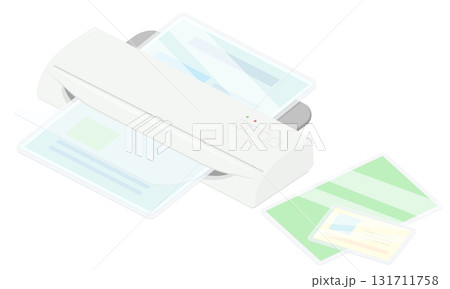 ラミネーターでラミネート加工をするイラスト