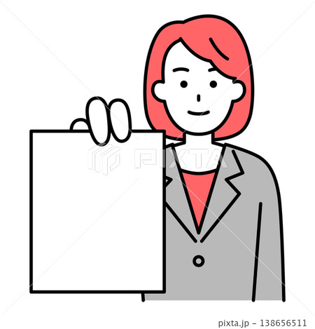 イラスト素材: 書類を持ち説明するビジネス女性のカットアウトイラスト