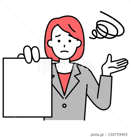 書類を見せて困っているスーツの女性