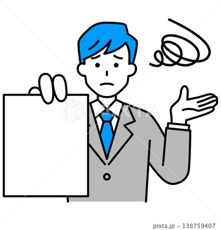 書類を見せて困っているスーツの男性