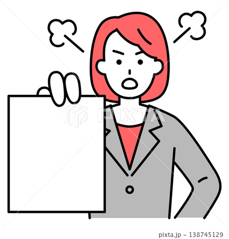 書類を見せて怒るスーツの女性
