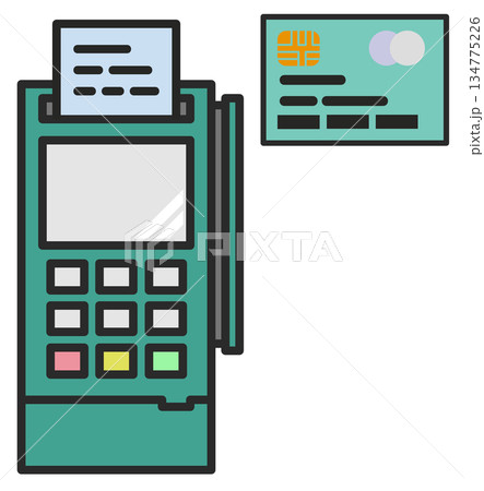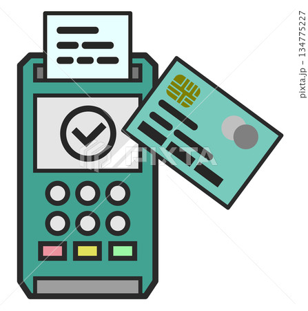 お店で買い物をして支払いをするレジスターのイラスト