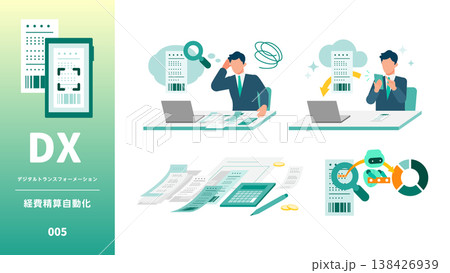 DX デジタルトランスフォーメーションを推進する社会のイラスト スマホ撮影でレシート自動処理
