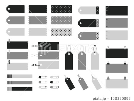 シンプルラベルタグセット モノトーン 見出しデザイン素材