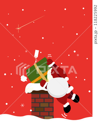 煙突にお届け物を押し込むサンタクロースのイラスト04