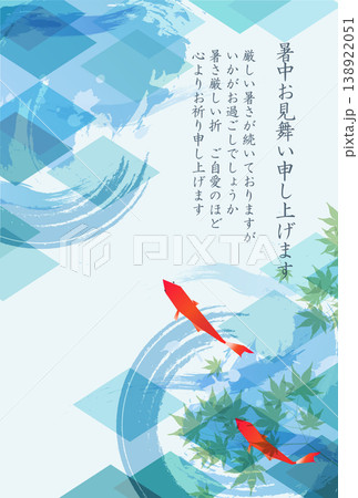 金魚と紅葉があしらわれた涼しげな暑中見舞いデザイン
