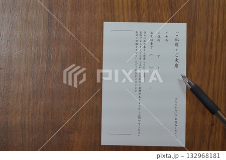 出欠はがき(未記入)とボールペン