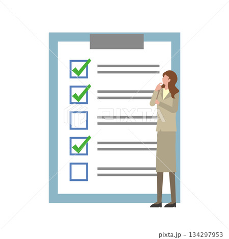 チェックマークをつける褐色肌女性のセット